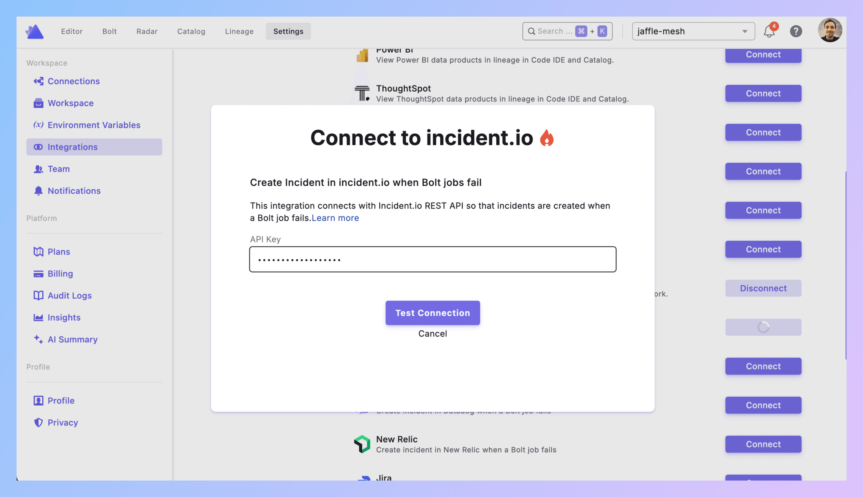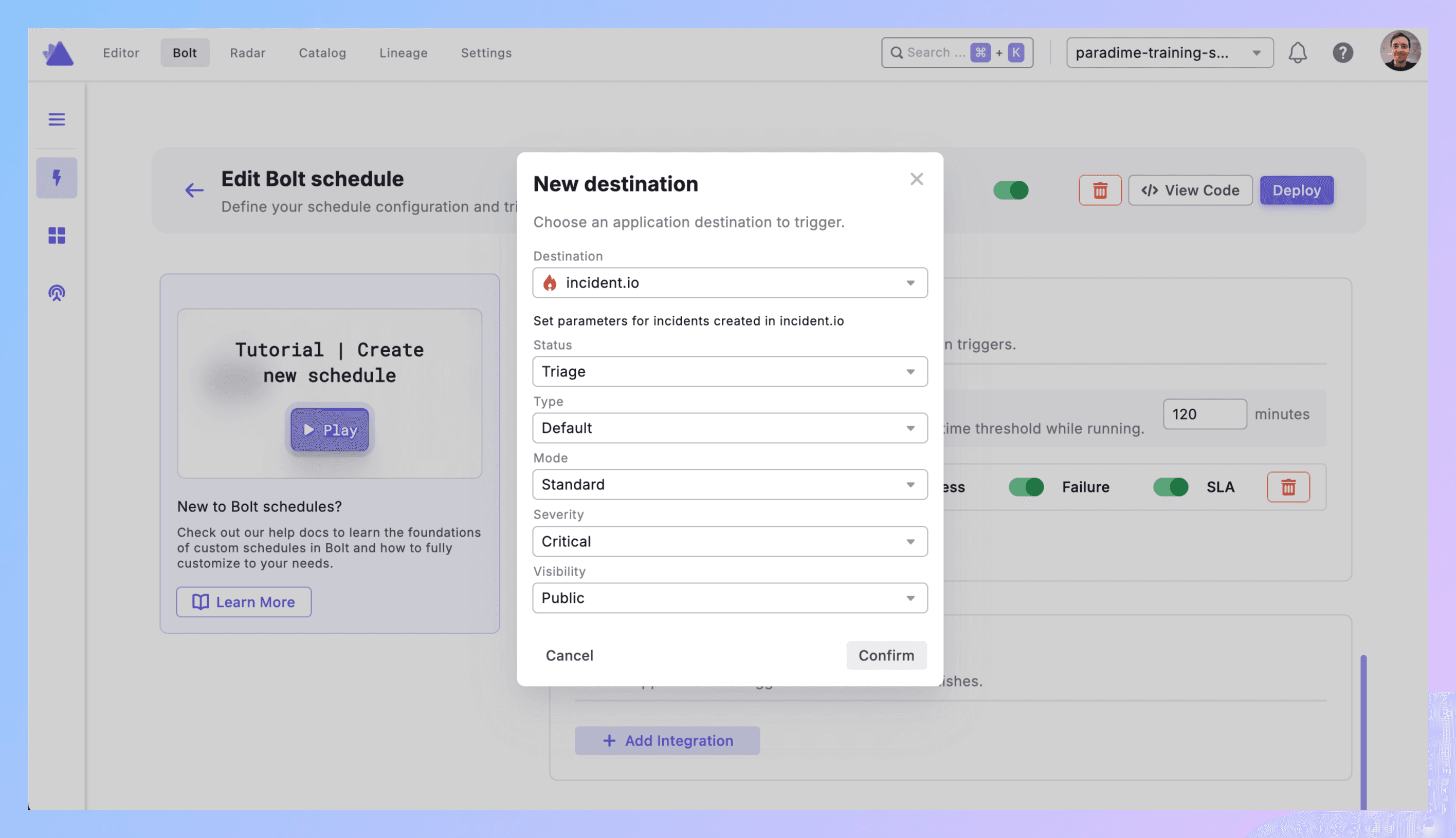 Connect Paradime's dbt™ orchestration to incident.io and every real failure becomes a tracked incident with ownership, communication, and resolution tracking.