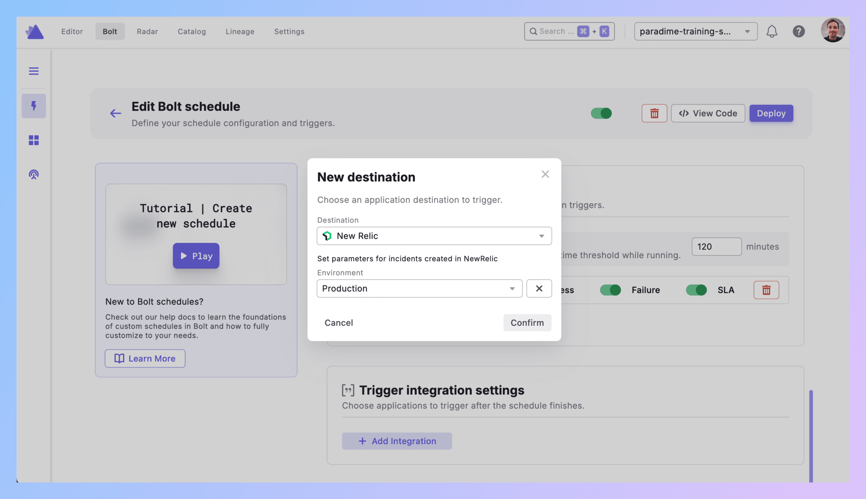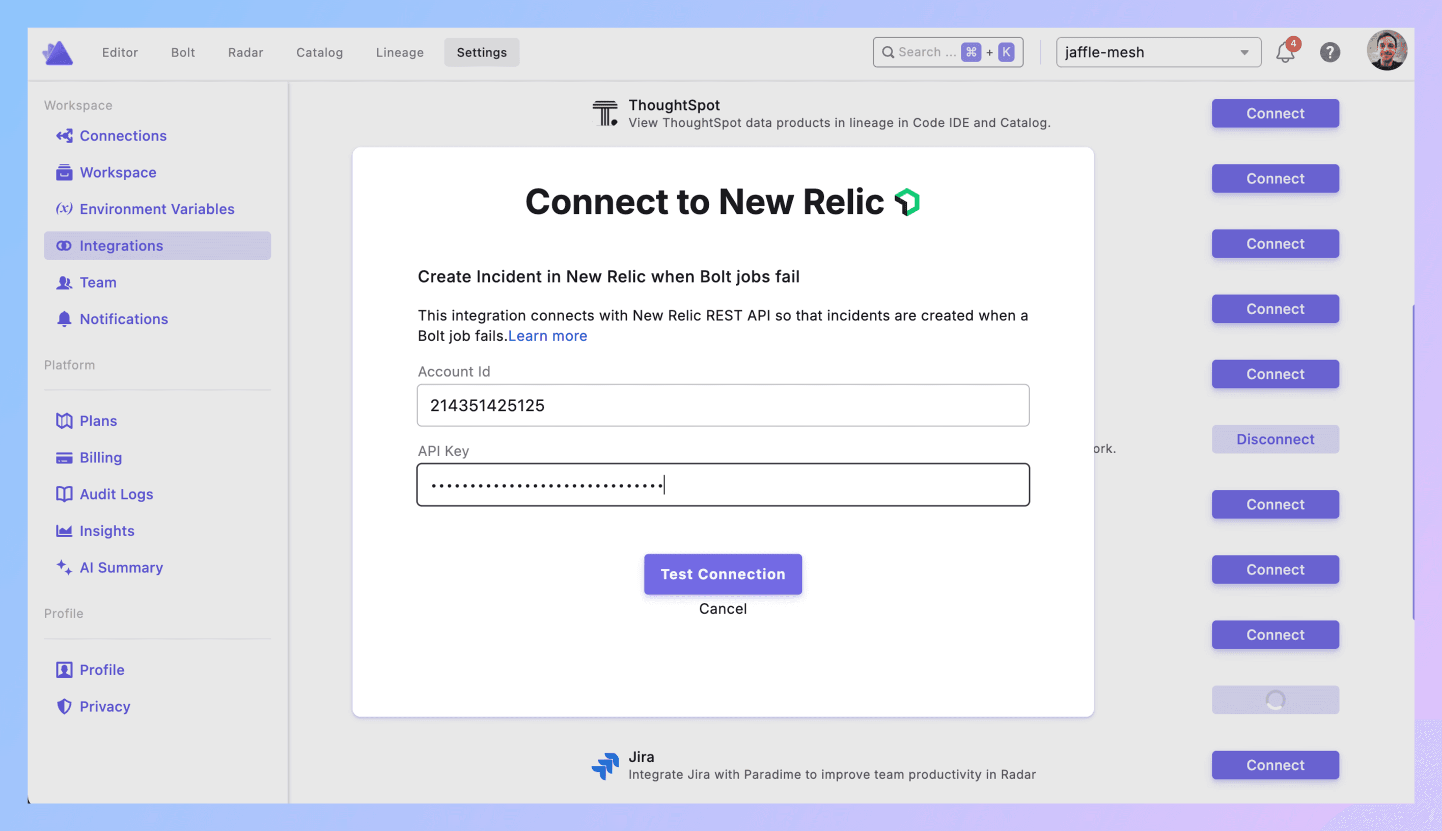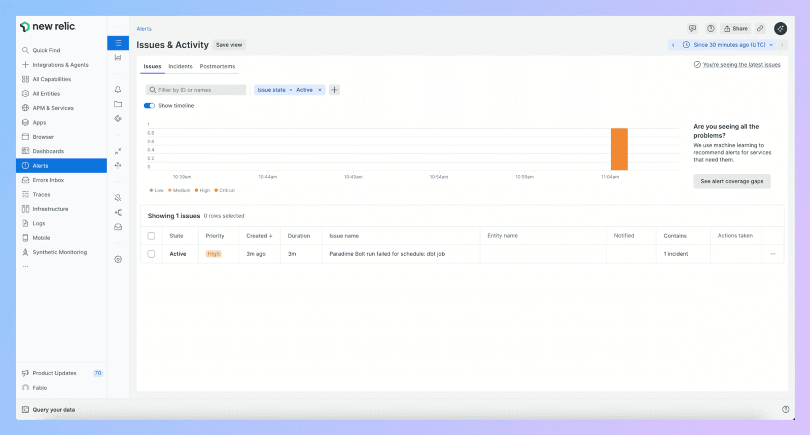 Wire Paradime to New Relic and data pipeline incidents flow into the same platform as everything else. Track data pipeline health in New Relic alongside API response times and database queries.