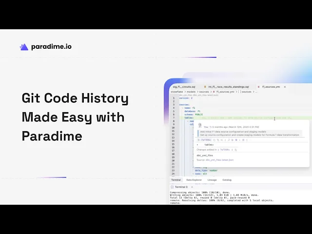 Perhaps the most powerful aspect of Paradime's Git integration is making advanced features accessible to analytics engineers who don't want to become Git experts. Git blame, commit history, and code archaeology become point-and-click operations rather than command-line adventures.