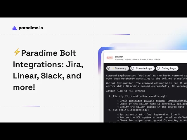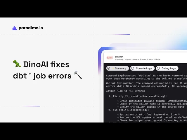 The breaking point usually hits during an incident. It's 8 AM, your dbt™ pipeline has failed, and you're staring at cryptic logs trying to figure out what went wrong while stakeholders ask when their dashboards will be updated. Sound familiar?