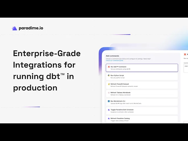 In our latest Paradime vs dbt Cloud™ livestream, we demonstrated how modern data teams are moving beyond basic scheduling to sophisticated orchestration that actually supports enterprise-grade production needs. From AI-powered debugging to timezone-aware scheduling and enterprise integrations, these capabilities represent a fundamental evolution in how teams manage production dbt™ workloads.