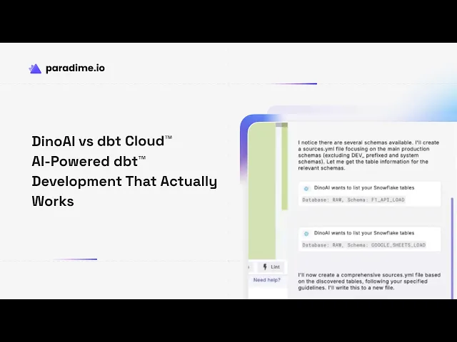 In our latest Paradime vs dbt Cloud™ livestream, we demonstrated why analytics engineers are achieving 10x productivity gains by moving to AI-native development platforms. The transformation isn't just about features—it's about fundamentally rethinking how dbt™ development should work.