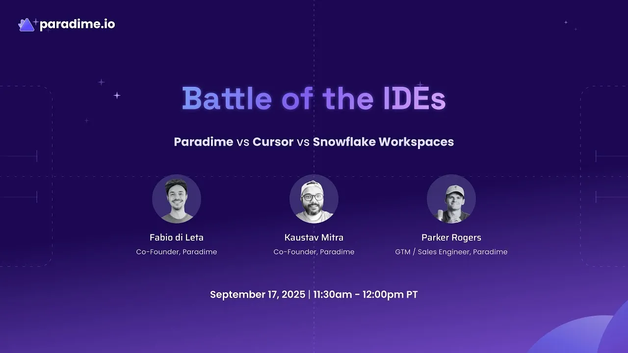 Battle of the IDEs - Paradime vs Cursor vs Snowflake Workspaces