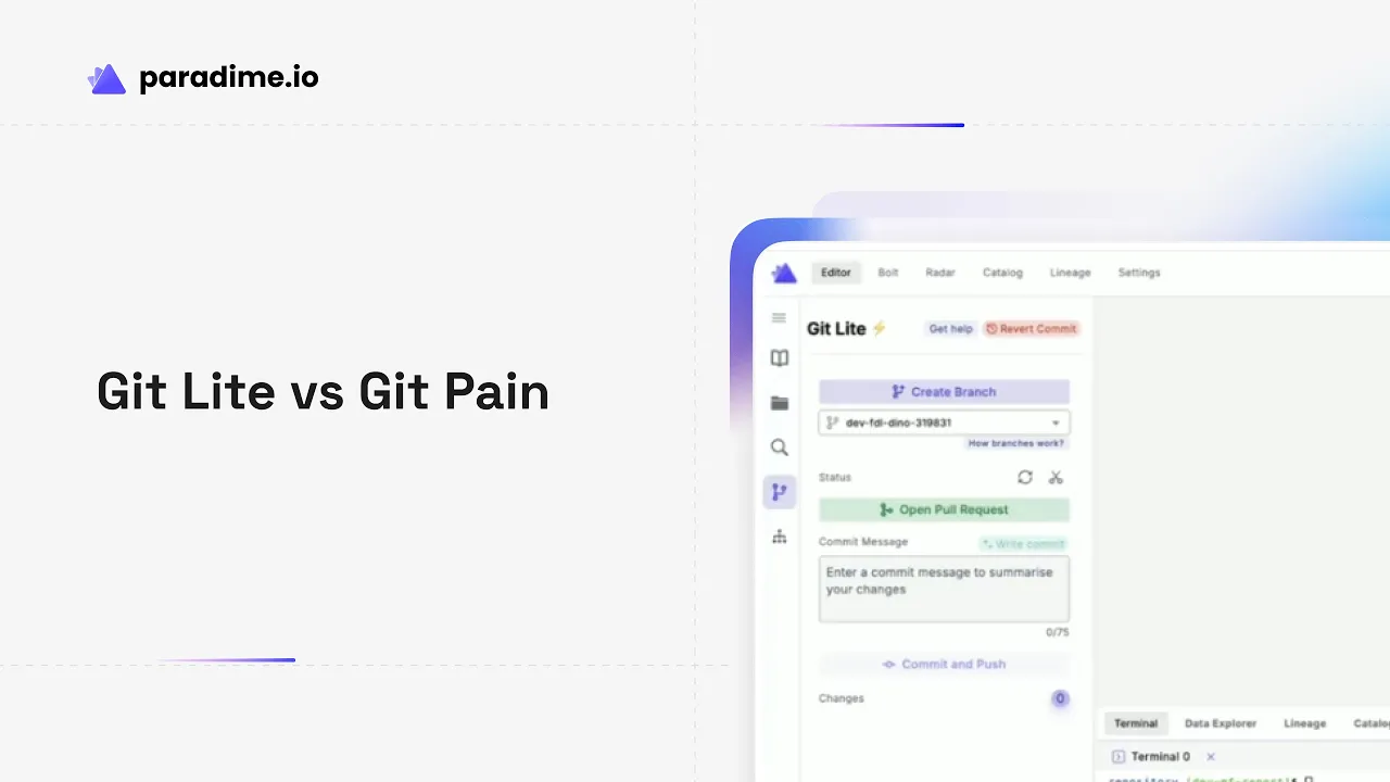 Paradime is an AI-powered workspace that consolidates the entire analytics workflow, often described as "Cursor for Data." It eliminates tool sprawl and fragmentation by providing an integrated environment with a Code IDE, DinoAI (an AI co-pilot), Paradime Bolt (production-grade orchestration), and Paradime Radar (column-level lineage and monitoring). Teams using Paradime achieve 10x faster shipping, 50-83% productivity gains, and 20%+ reductions in warehouse spending.