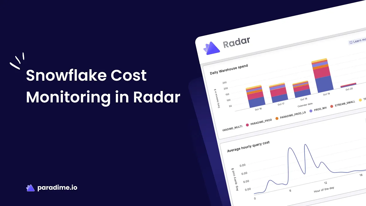 Paradime's Radar dashboard solves this challenge by providing comprehensive, real-time insights into your Snowflake costs. This guide walks you through how to leverage Radar's cost monitoring features to track daily warehouse spend, analyze query costs by user and role, identify expensive timeout queries, and optimize dbt project operations. By the end, you'll have actionable strategies to reduce warehouse spending by 20% or more while maintaining performance.