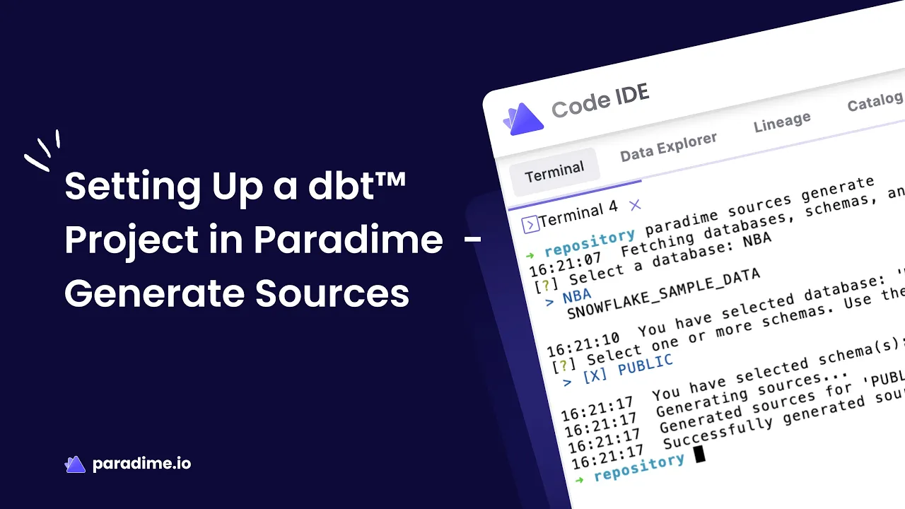 How to Set Up a dbt Project in Paradime and Generate Sources